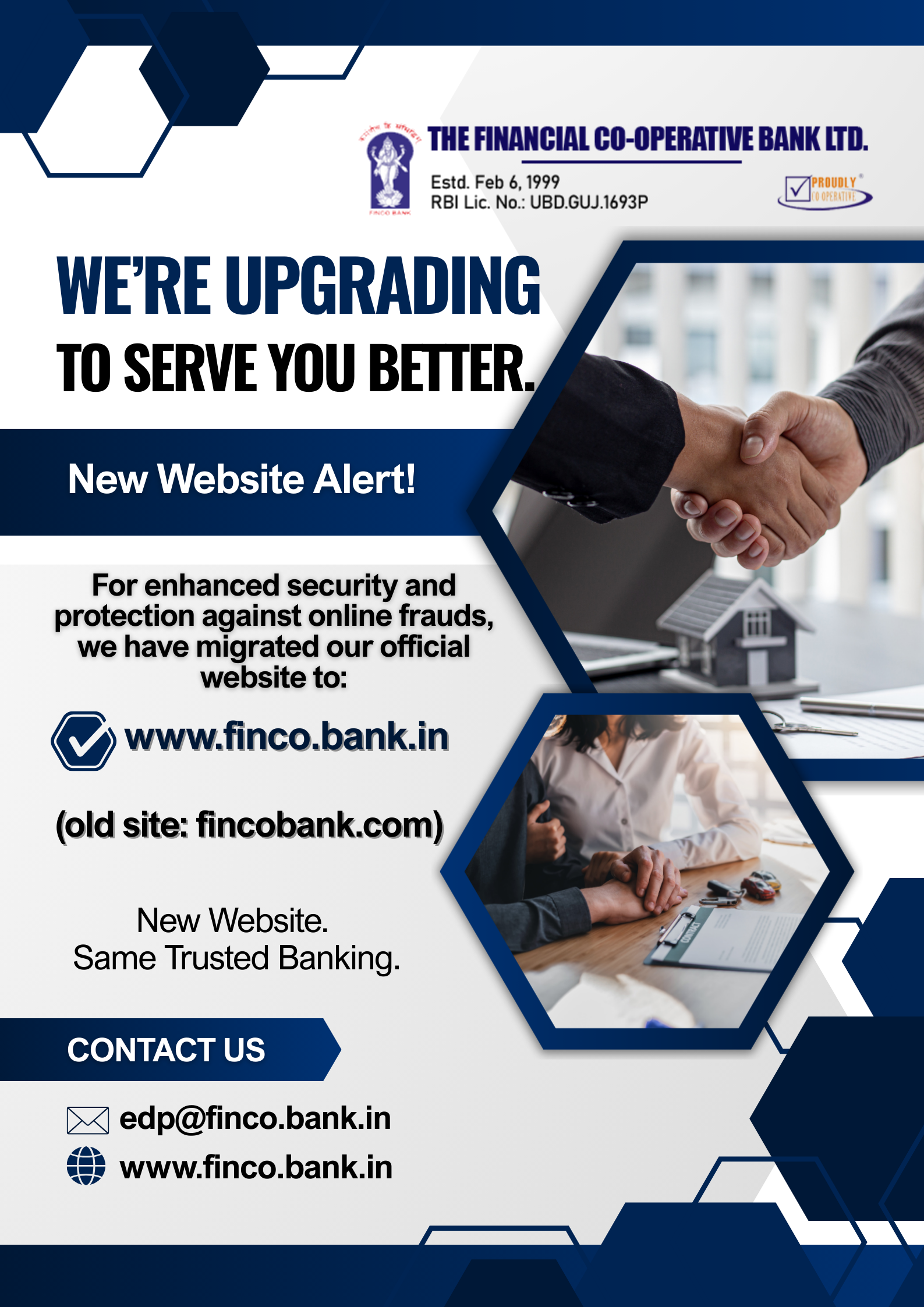 The Financial Co-Operative Bank Ltd., established on 6th Feb 1999. The Founder Chairman Shri C.P.Jaria and Vice Chairman Shri B.M.Agarwal, having its registered office at 3047,Abhishek Market, Ring Road, Surat.